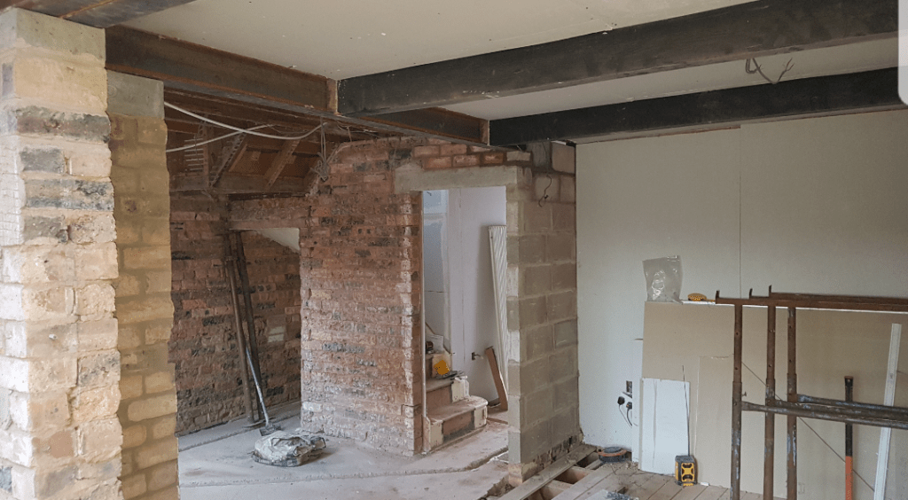 Brickwork and Blockwork upto roof, timber work for roof installed