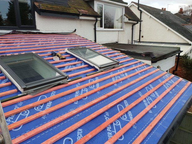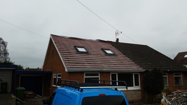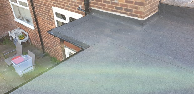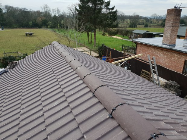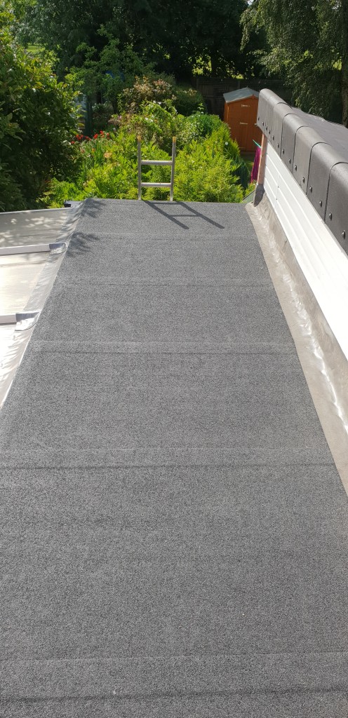 Three layer torch on felt flat roof, and dry mono ridge installation